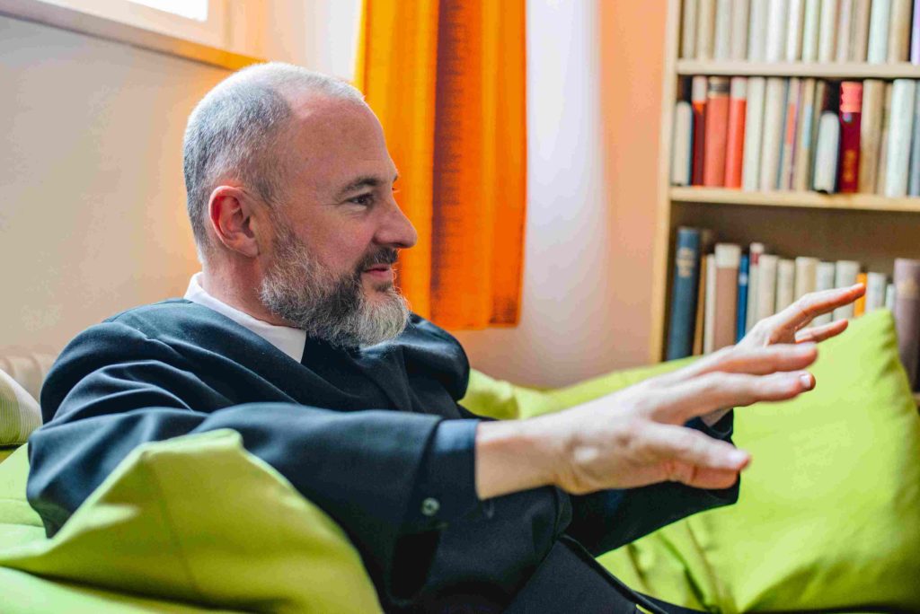 Wir haben uns bei ihm im Vor-Oratorium in der „Herren-WG“ verabredet. Er begrüßt mich freundlich, aber mit dem Hinweis, dass ich zu früh gekommen bin. Das hat gestimmt, und seine Bemerkung darüber fand ich erfrischend ehrlich. Er gesteht mir, dass schon seine Mutter zu ihm als kleiner Junge immer sagte: „Jetzt sei doch nicht so ehrlich!“ Denn das kommt nicht immer gut an. In meinem Fall machte es ihn mir noch sympathischer. Der „Draht“ war gleich da.